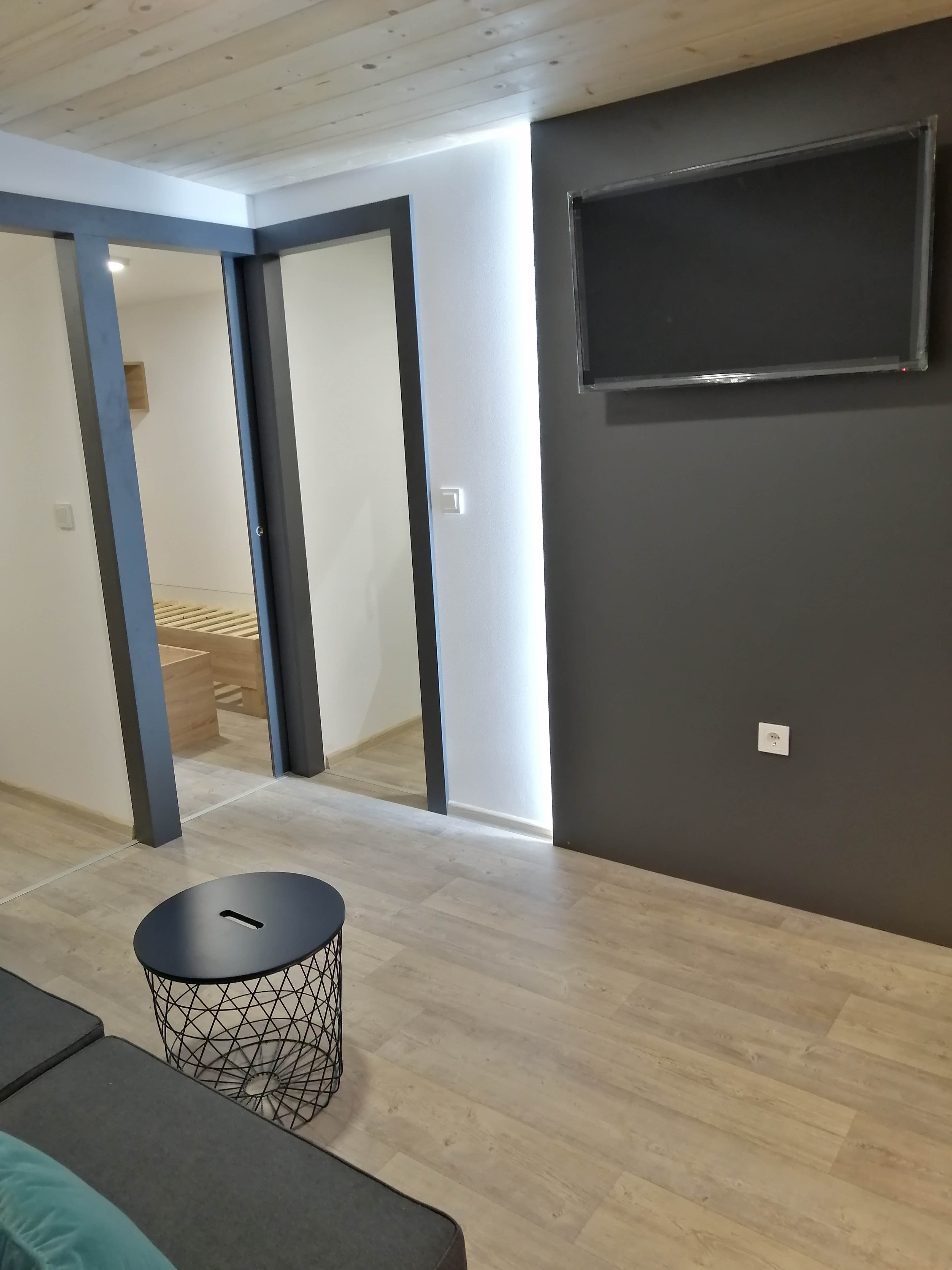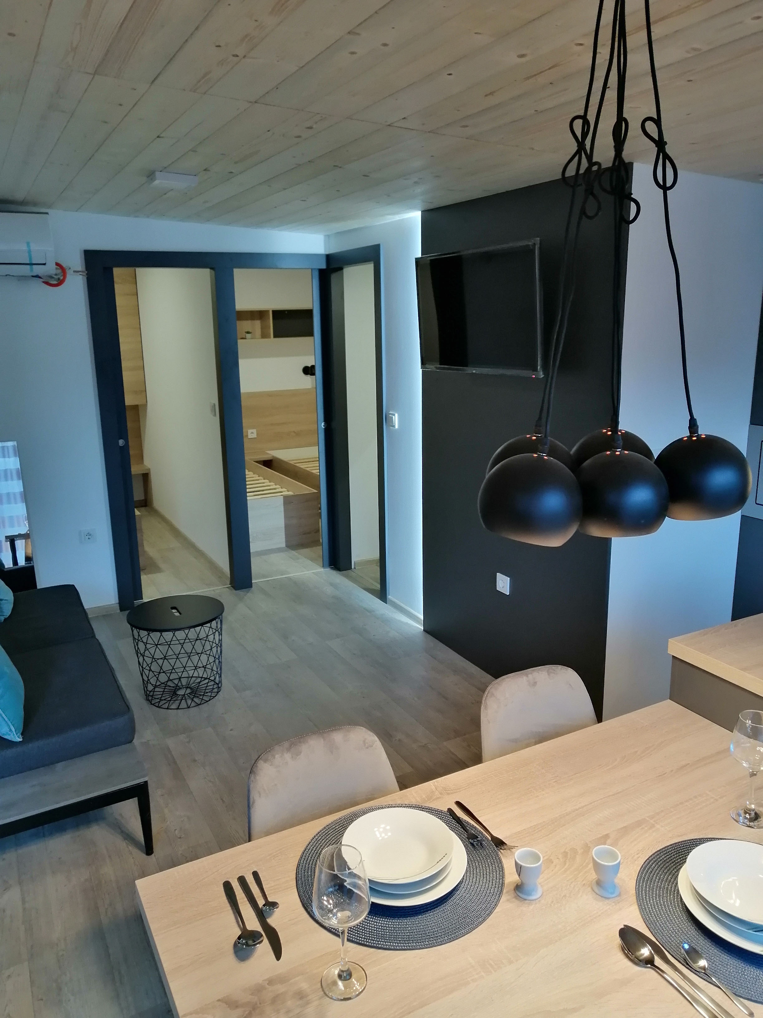 Dnevni boravak - Stol i 4 stolice, polica ispod televizora, TV 40 incha, klima uređaj, klub stolić, trosjed na razvlačenje.