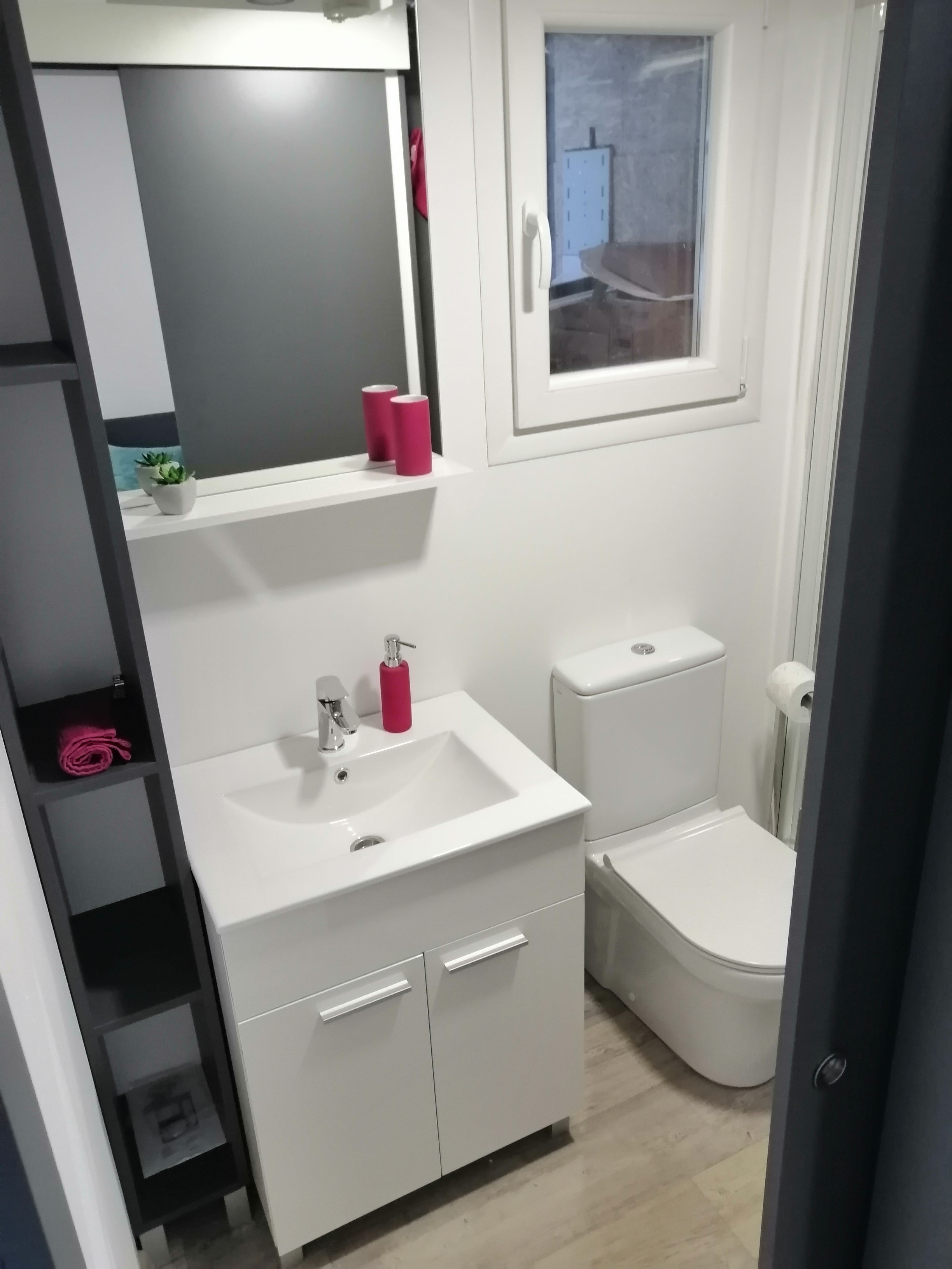 Kupaonica - Tuš kabina 80x120, umivaonik sa slavinom, wc školjka, polica za stvari.