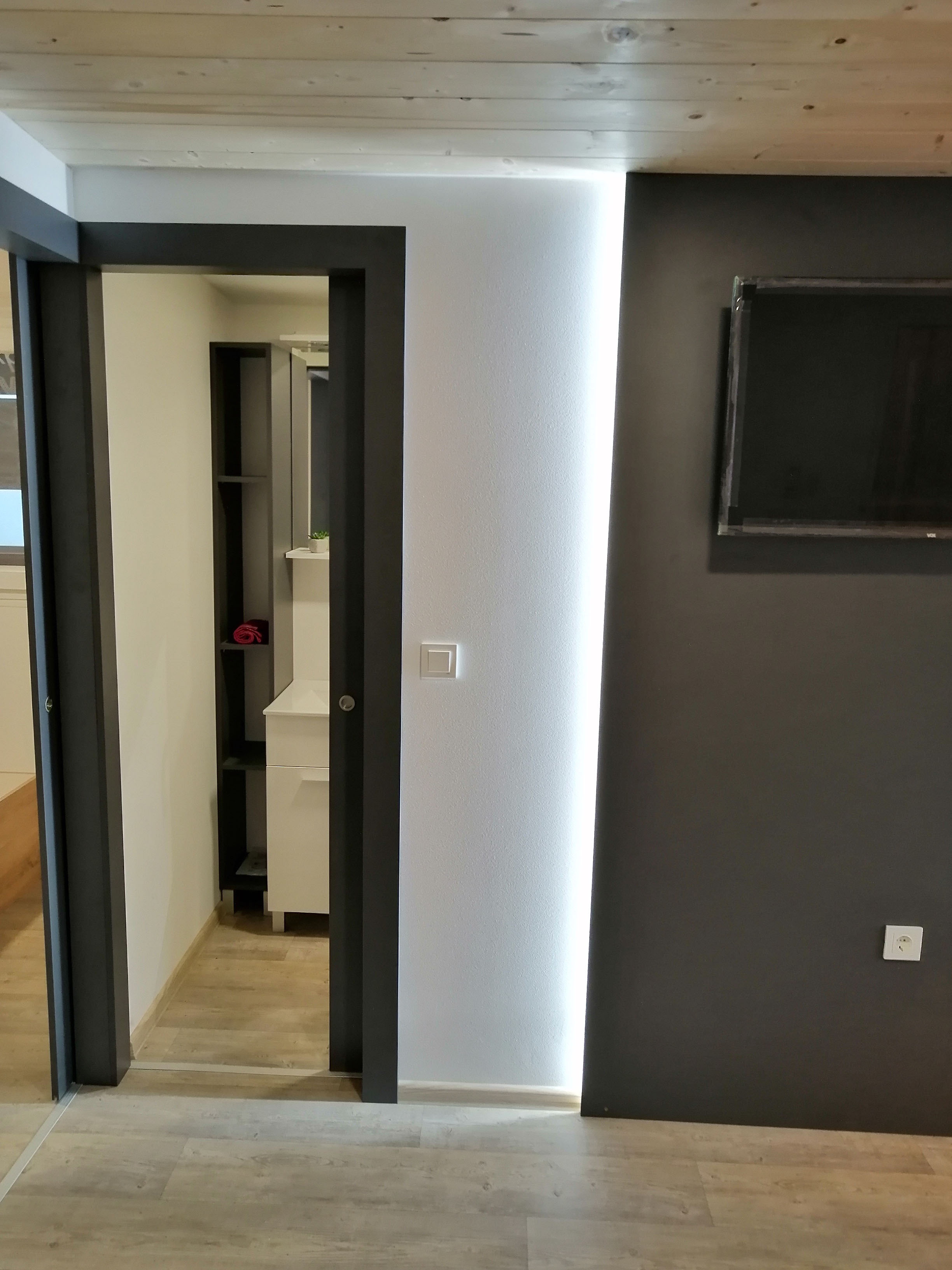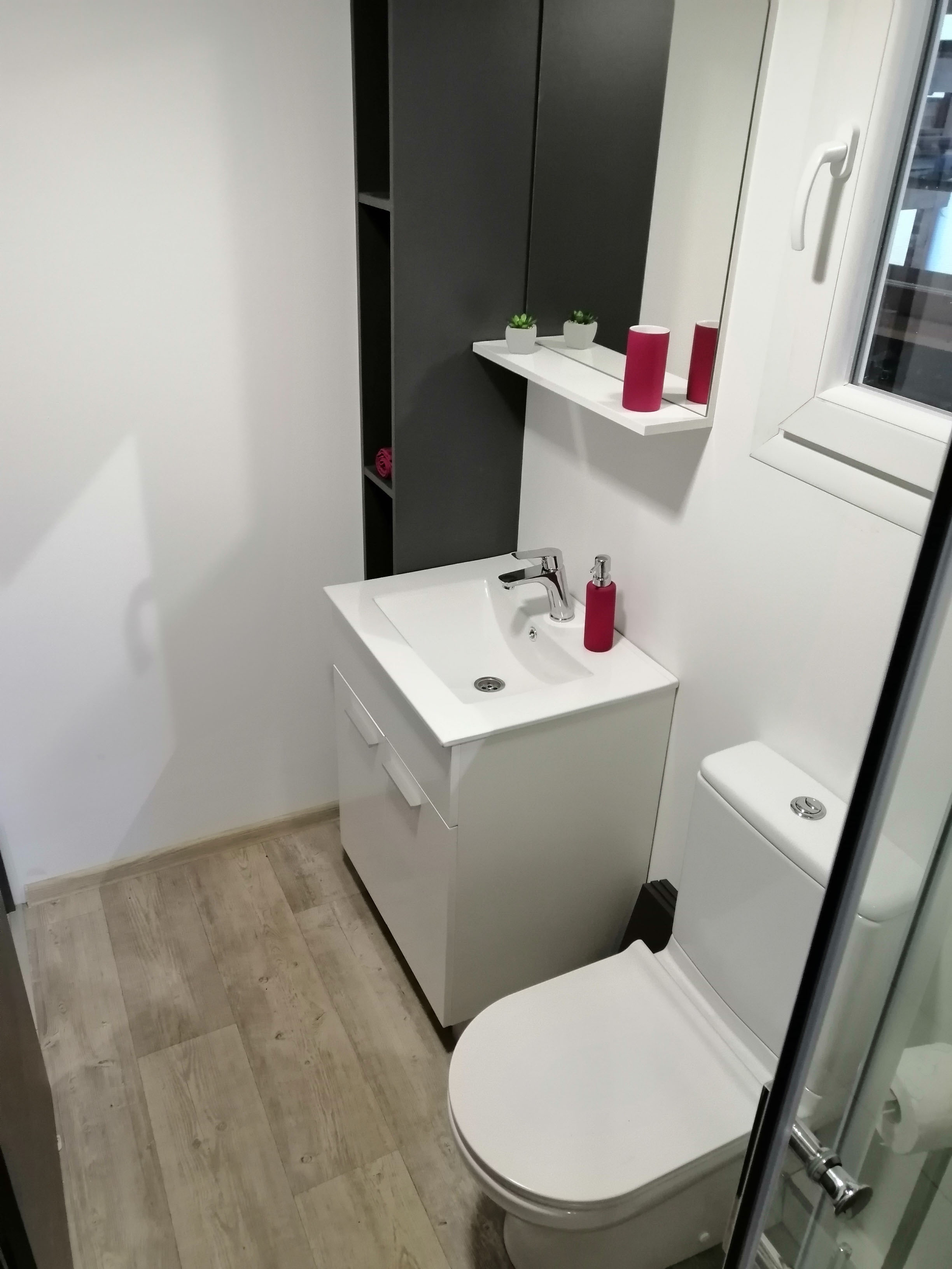 Kupaonica - Tuš kabina 80x120, umivaonik sa slavinom, wc školjka, polica za stvari.
