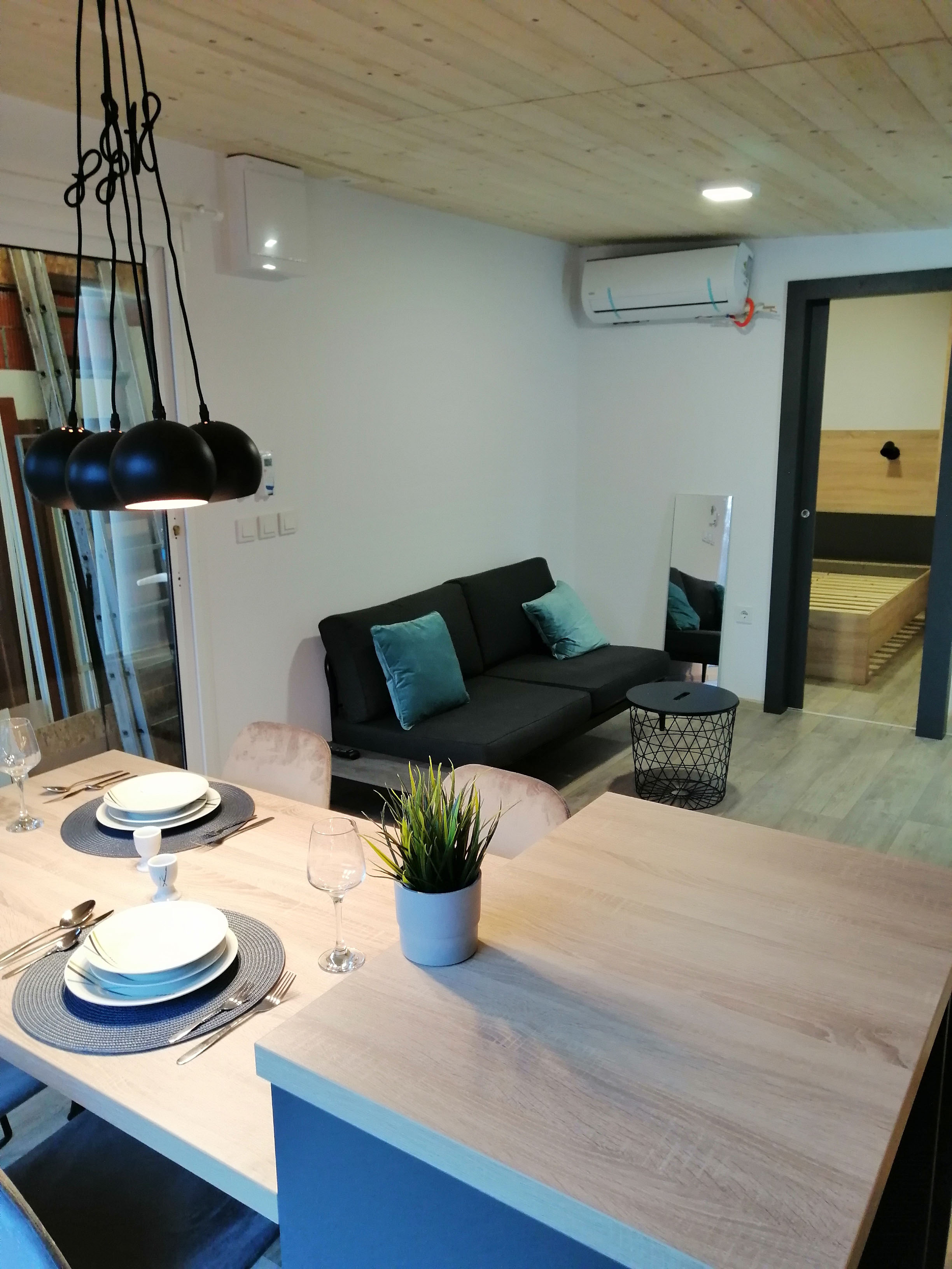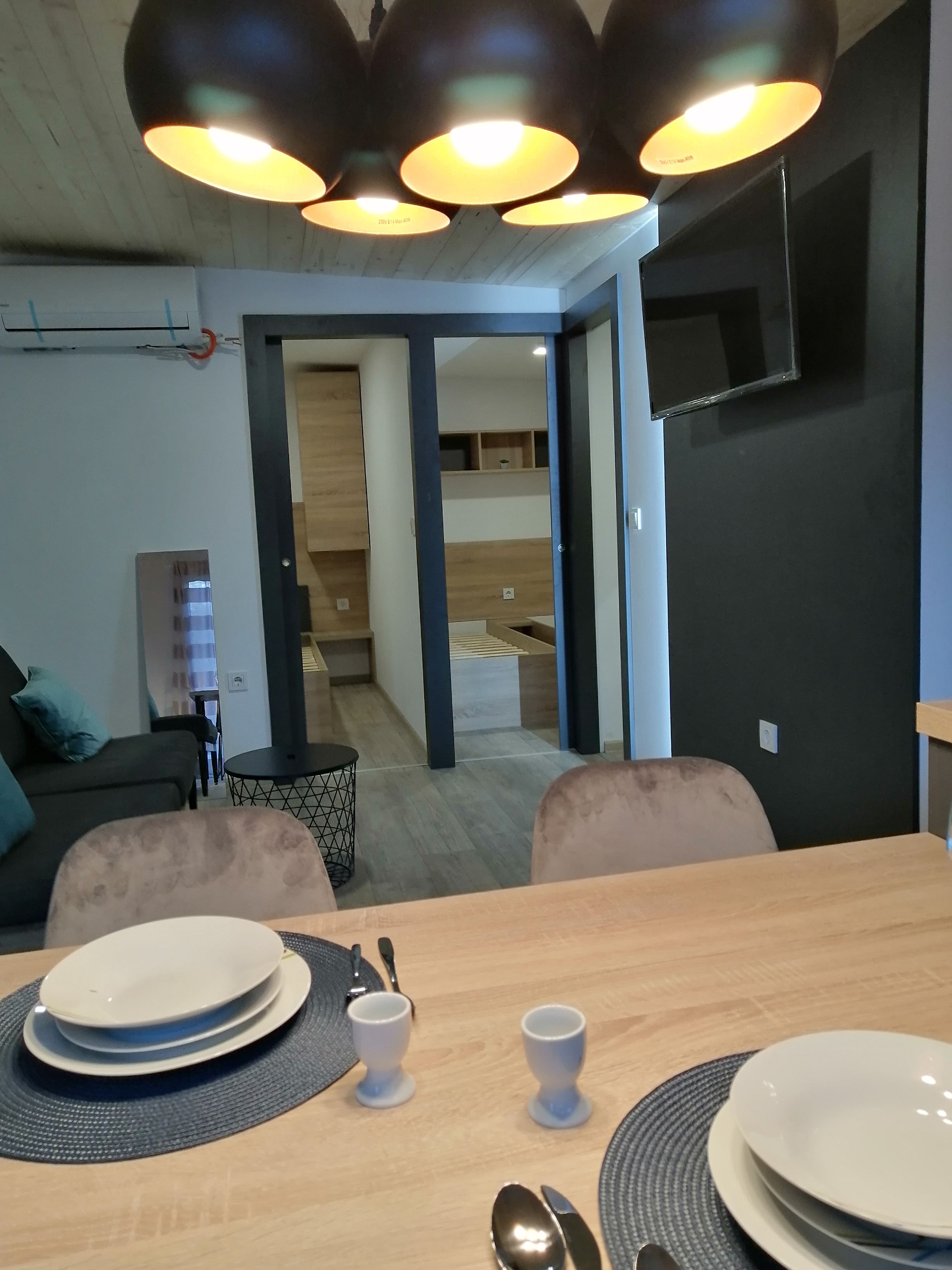 Dnevni boravak - Stol i 4 stolice, polica ispod televizora, TV 40 incha, klima uređaj, klub stolić, trosjed na razvlačenje.