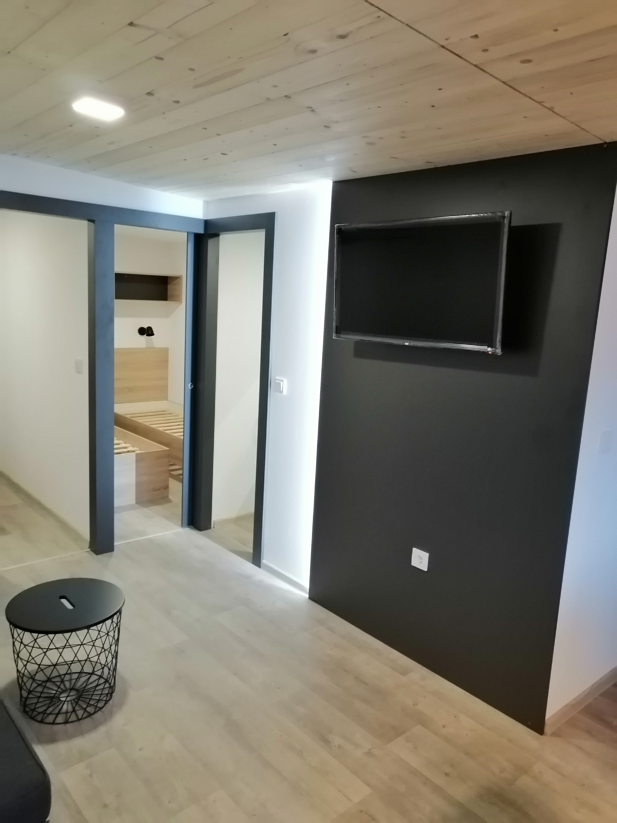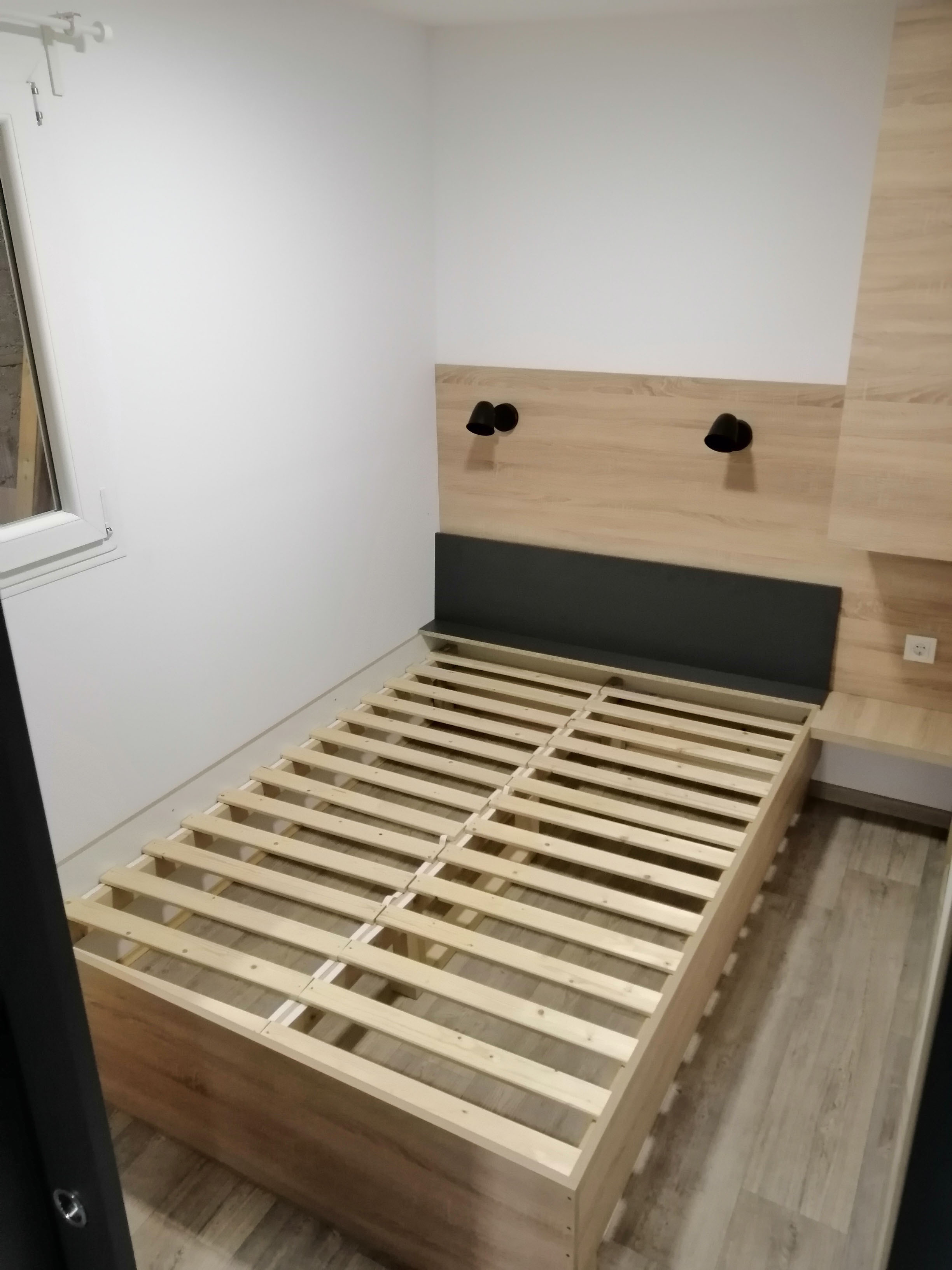 Spavaća soba 1 - Bračni krevet 140x200 cm + podnice i madrac, 1 noćna ormarića, 1x ormar za odjeću.