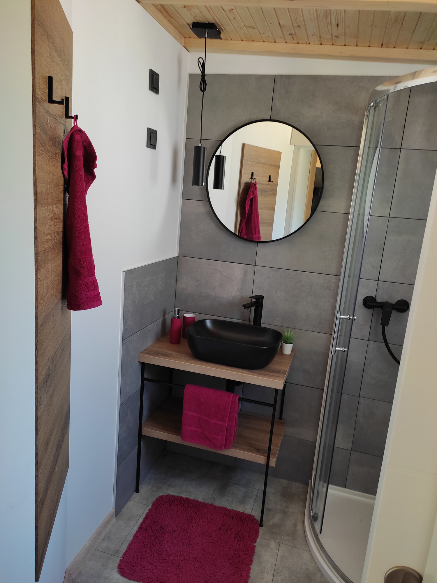 Kupaonica - Tuš kabina 80, umivaonik sa slavinom, wc školjka, ormarić za stvari, el. bojler 50 L.